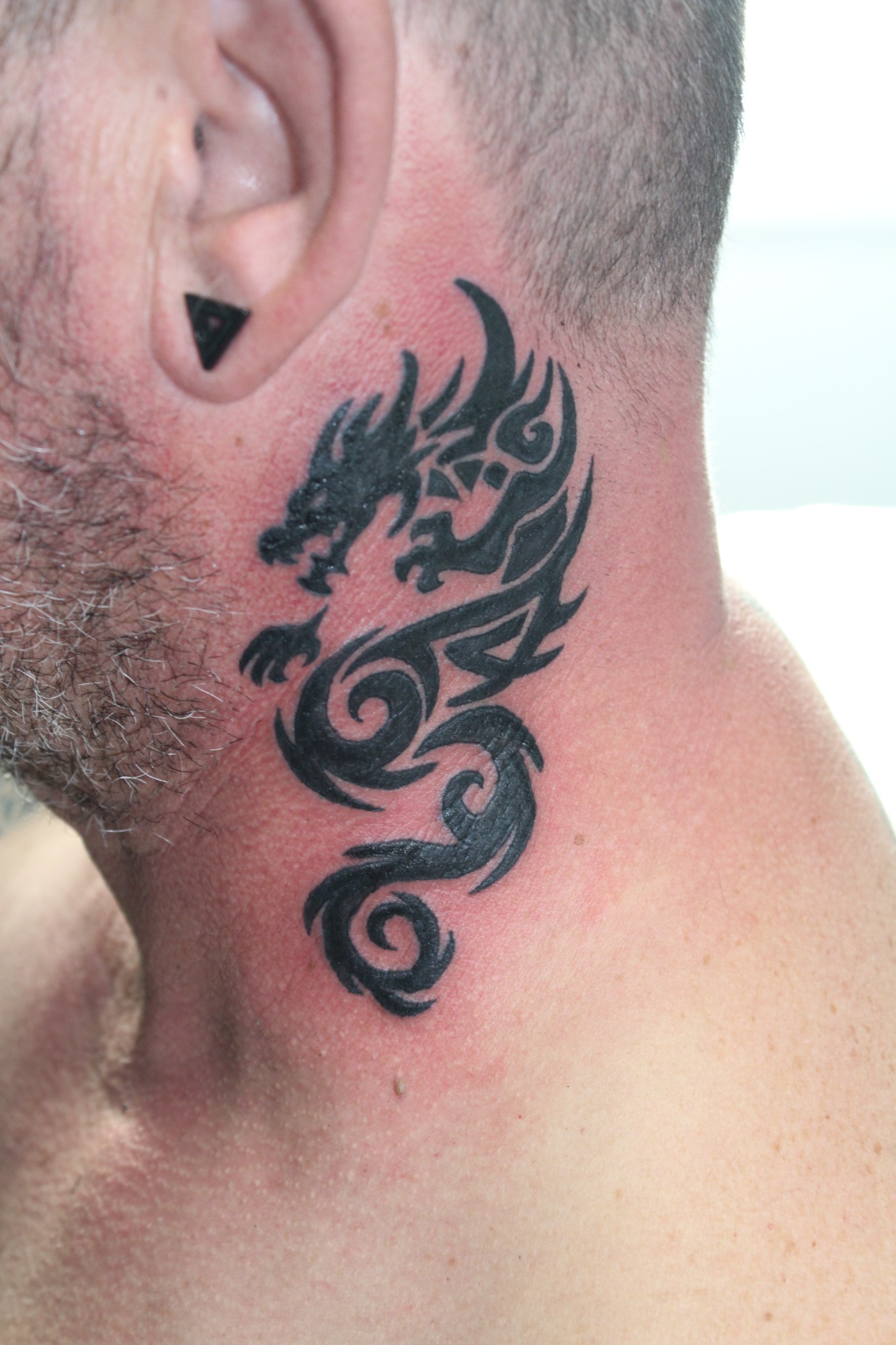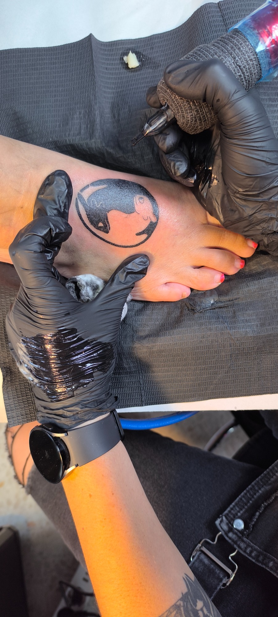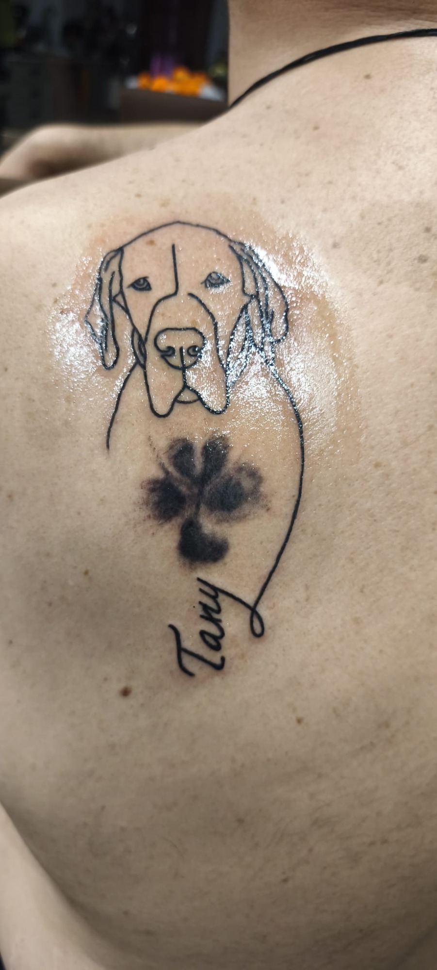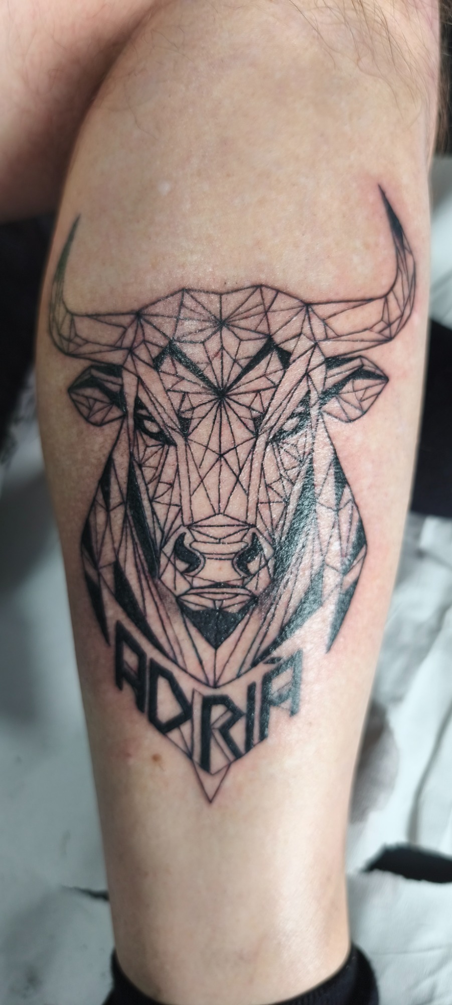 Eva Elena, nueva clienta, acabamos un tatuaje anterior que estaba incompleto (La estrella, su marido desde el cielo) y un tatuaje nuevo, un gato negro. (MI MADRE)